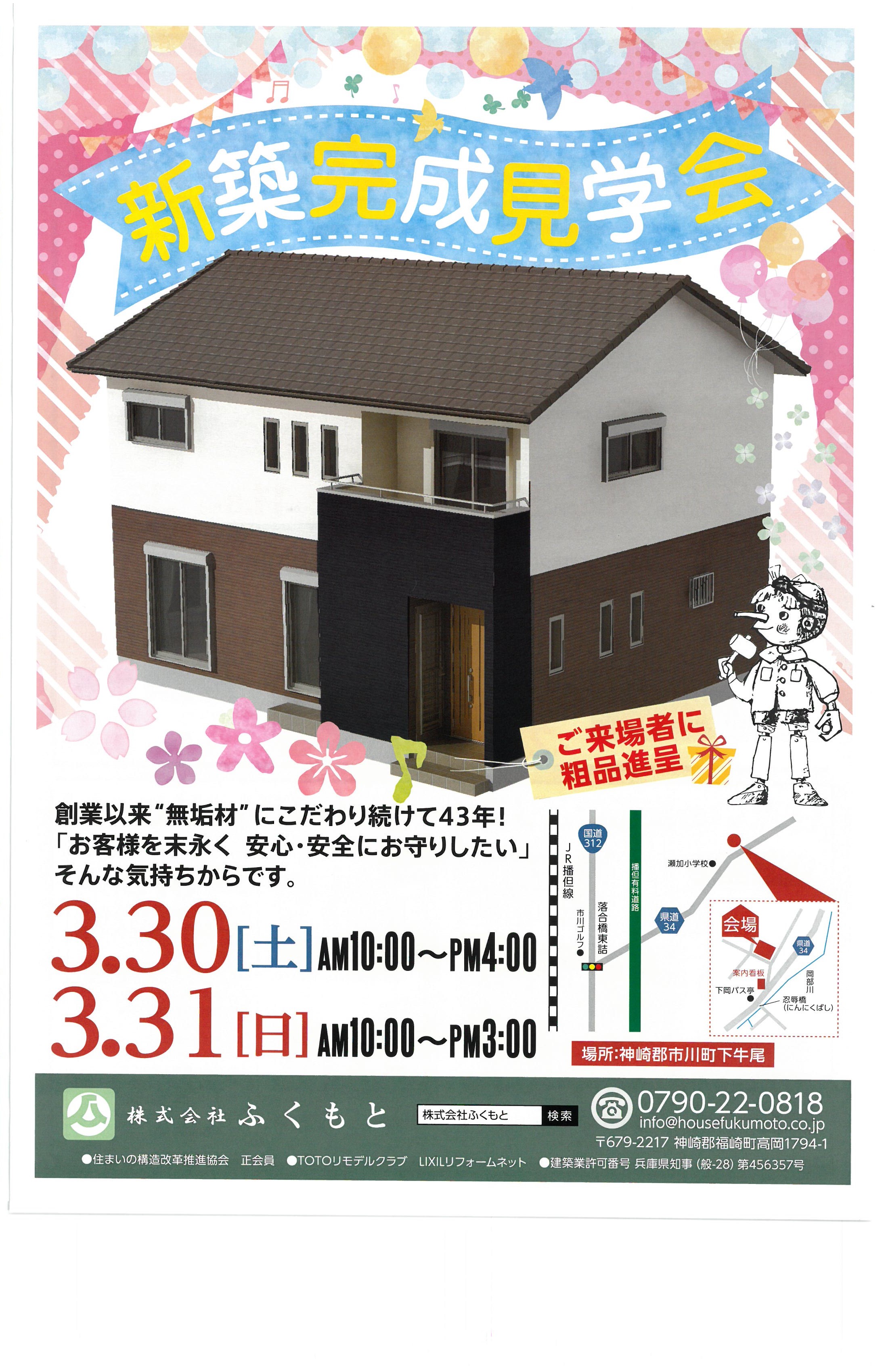3月28日(木)の新聞チラシに完成見学会のご案内が入りますので